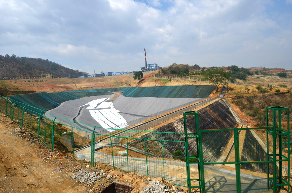 擋壩采用加筋土石壩,水平防滲系統(tǒng)采用雙人工襯層結(jié)構(gòu),滲瀝液和次滲瀝液重力流至下游的滲瀝液調(diào)節(jié)池,滲瀝液產(chǎn)量12t/d,滲瀝液調(diào)節(jié)池有效容積1200m³。