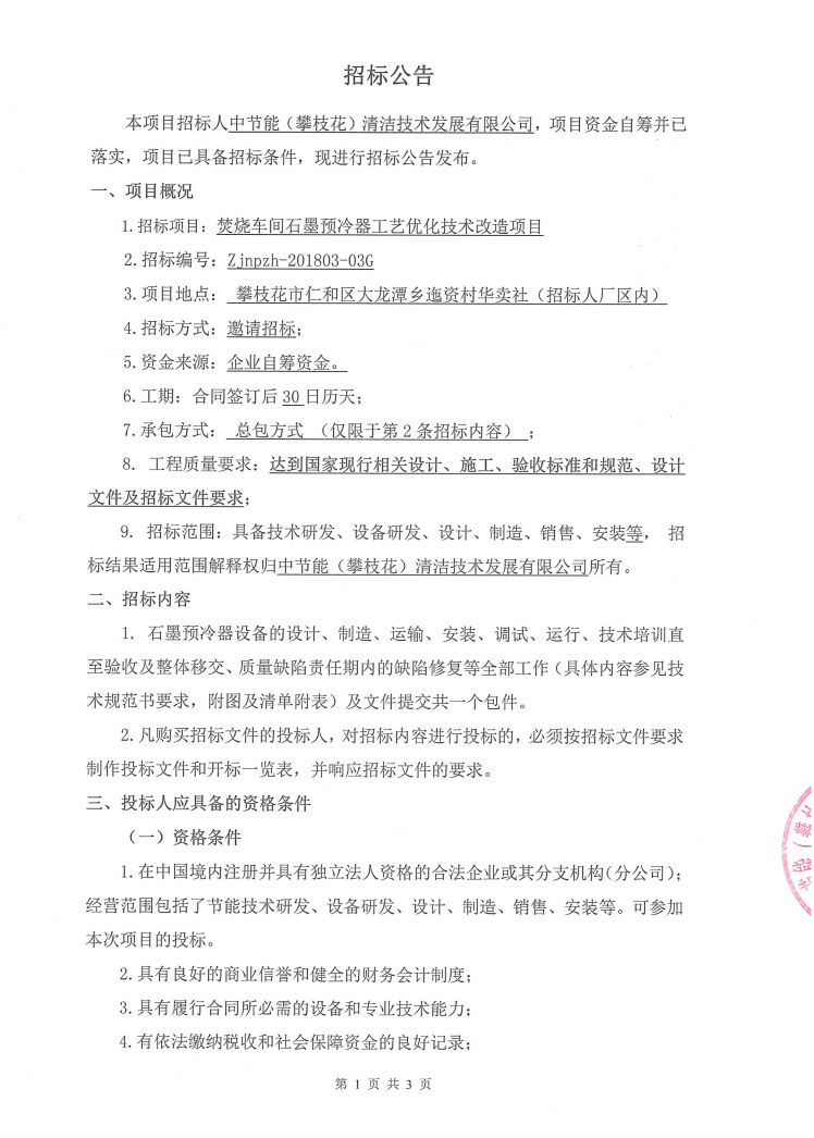 焚燒車(chē)間石墨預(yù)冷器工藝優(yōu)化技術(shù)改造項(xiàng)目招標(biāo)公告